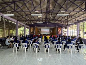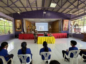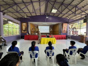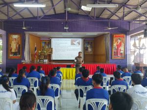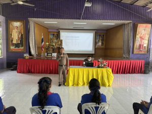 วันนี้ (8 ธันวาคม 2566) เวลา 08.30-10.30 น. พ.ต.ท.วิษณุ ศิริสุขชัยวุฒิ สวป.สภ.บางคนที ร.ต.อ.ชัชวาล ช้างแก้วรอง สว.จร.สภ.บางคนที พร้อมเจ้าหน้าที่ตำรวจจราจร 4 นาย บรรยายให้ความรู้เรื่องยาเสพติด การปฏิเสธยาเสพติด บุหรี่ไฟฟ้าและวินัยจราจร เกิดความตระหนักรู้ถึงความปลอดภัย การใช้รถจักรยานยนต์ทุกครั้ง ต้องสวมหมวกนิรภัย แก่นักเรียนจำนวน 50 คน ณ หอประชุมโรงเรียนสกลวิสุทธิ ต.บางกุ้ง อ.บางคนที จ.สมุทรสงคราม