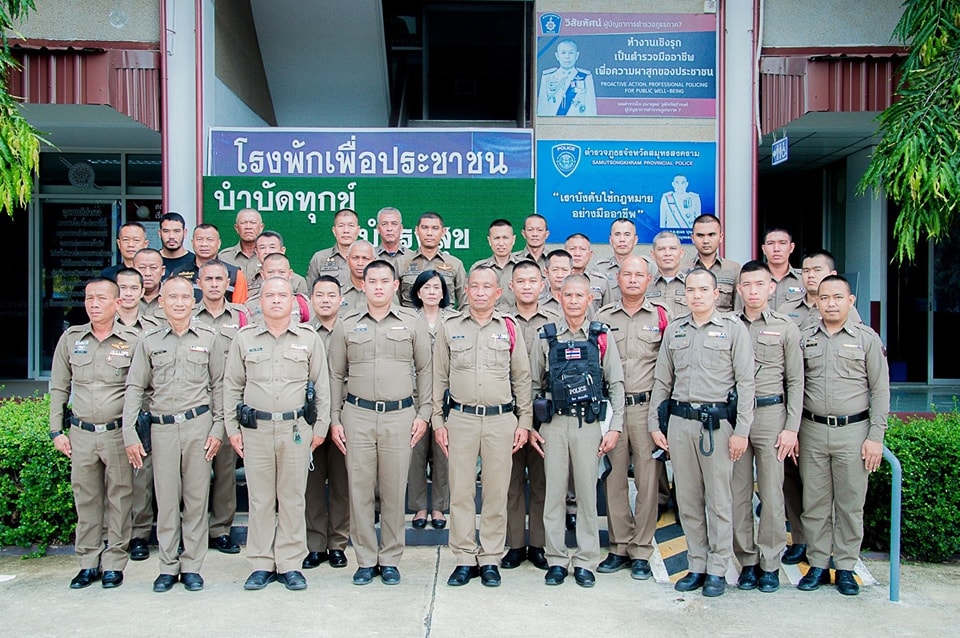 ผกก.สภ.บางคนที ร่วมประชุมเพื่อขับเคลื่อนโครงการตำรวจประสานโรงเรียน (1 ตำรวจ 1 โรงเรียน) ณ ห้องประชุมโรงเรียนวัดดอนมะโนรา(รังสิยานุกูล)